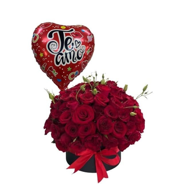 Hermosas y glamorosas 80 rosas en una caja circular . Color de la base puede variar de acuerdo a disponibilidad. Globo metalizado con mensaje de amor