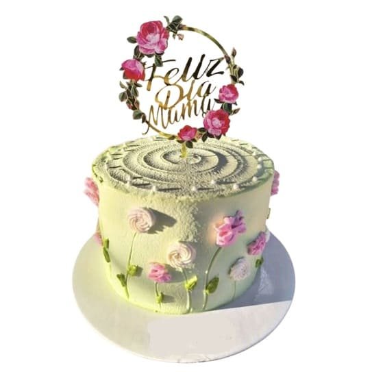 Esta torta de delicado y romántico decorado lleva un topper que la hace aún más especial!